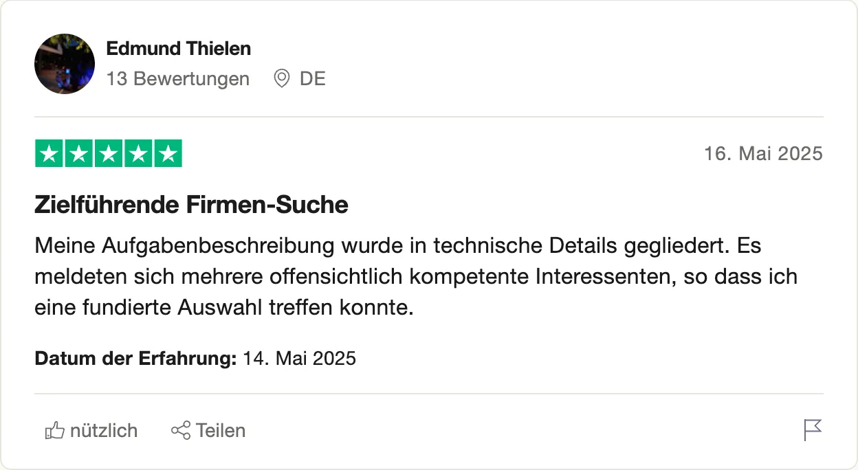 Wir suchen nach regionalen Dienstleistern, welche für Ihren Auftrag geeignet sind und freie Kapazitäten haben.